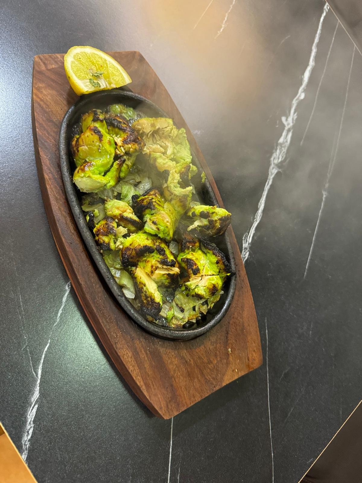 El pollo hryali es un pollo indio con hierbas aromatizado con menta y cilantro