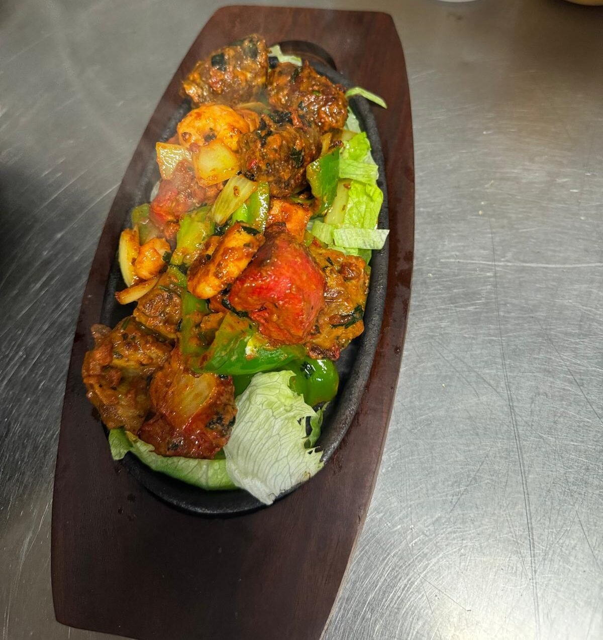 pescado, carne, pollo, cordero marinados con especias tradicionales, horneados en el